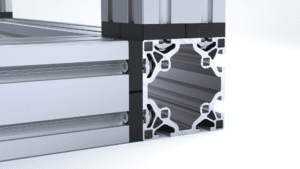 Dank des hohen Standardisierungsgrades lassen sich sämtliche Elemente des Baukastens einfach miteinander verbinden. Spielfrei und vibrationssicher, ohne Bohren und Fräsen.