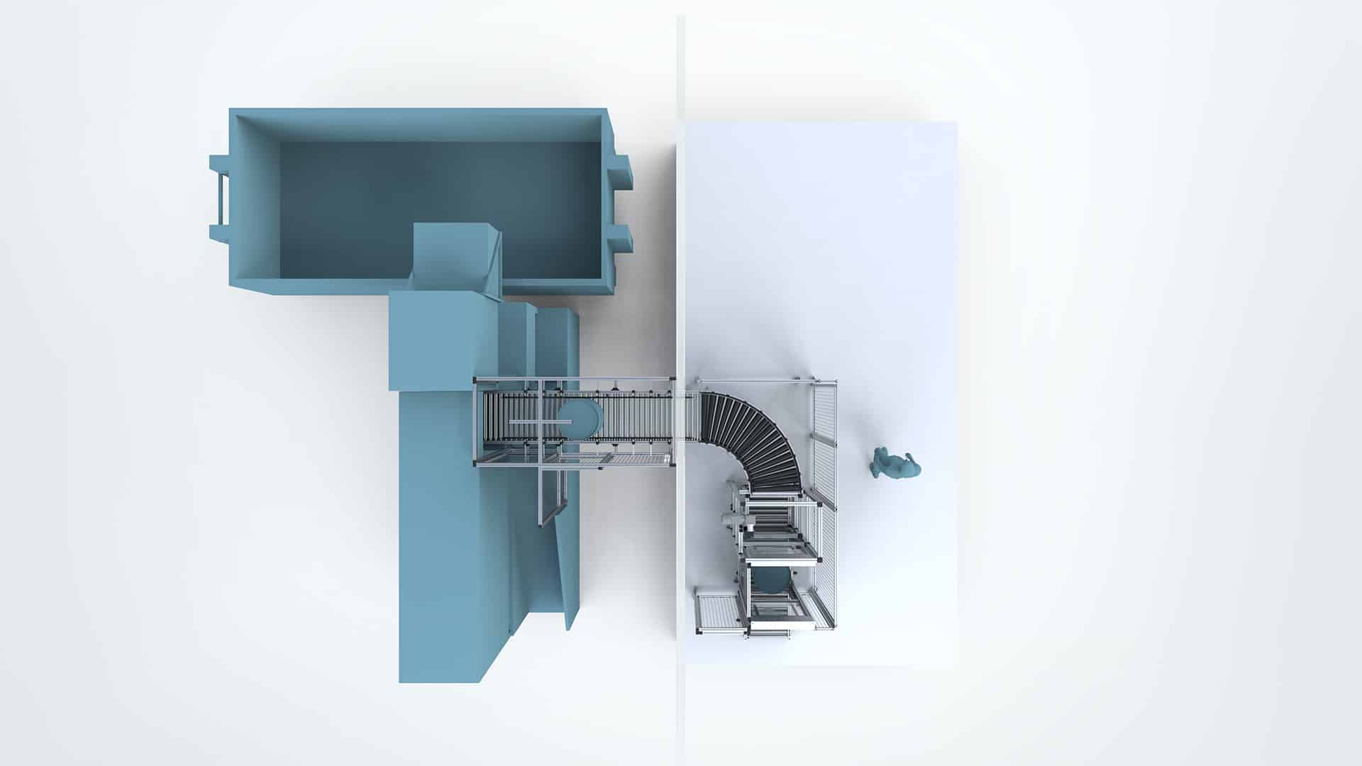 Bei einem Kunden von M2O bestand der Bedarf einer Automatisierungslösung für den Transport von leeren Kanistern in eine Presse. Auf eine ursprüngliche Anfrage eines simplen Förderteils folgte nach der individuellen Beratung schlussendlich eine vollständige Lösung aus dem Robotunits Automatisierungsbaukasten mit Rollenförderer, Heber, Schutzvorrichtungen und Hubtüren. Dank der persönlichen Beratung für die individuelle Anwendung wurde so der gesamte Prozess vollautomatisiert und effizient realisiert.