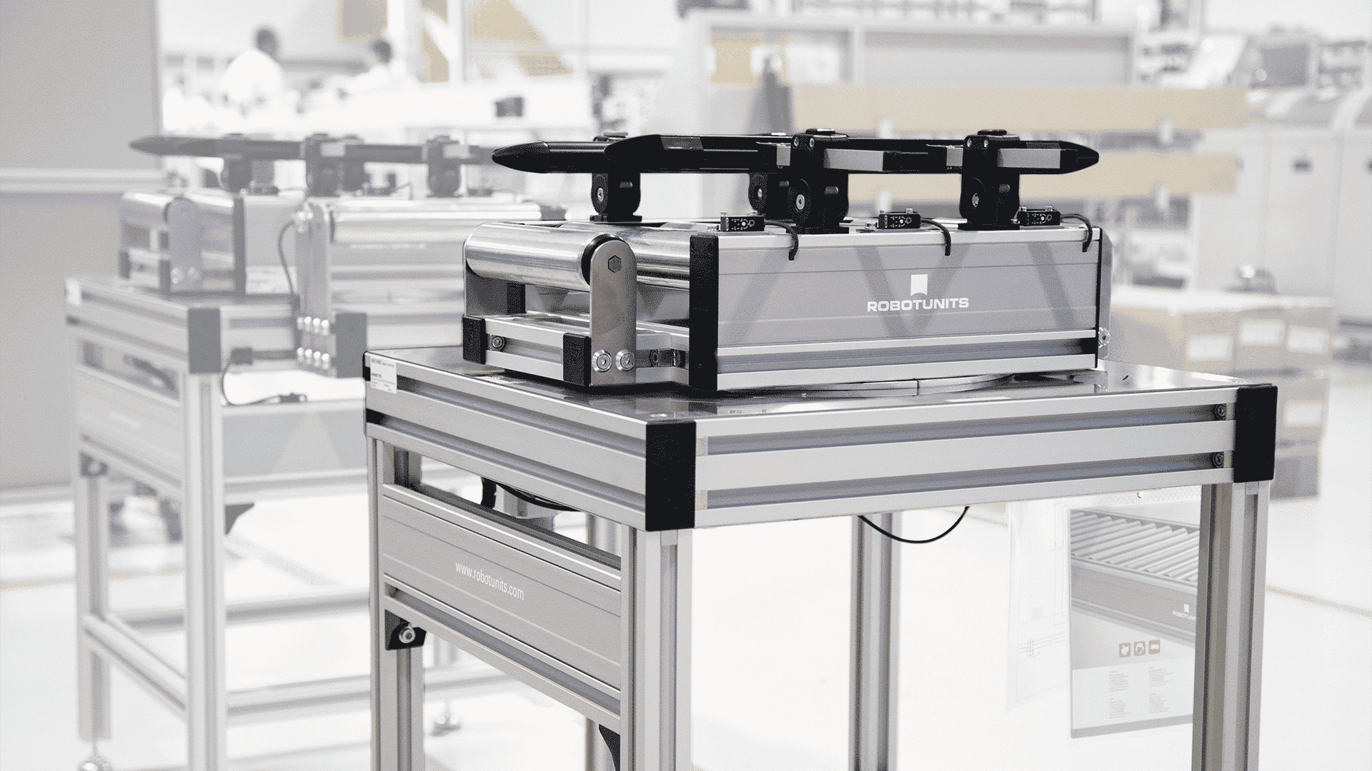 Erfahren Sie mehr über das vielseitige Robotunits Rollenfördersystem! Mit einer breiten Auswahl an Komponenten wie Dreheinheiten, Geraden, Einschleusern, Kurven, Eckumsetzern, Sortern, Schrägrollenförderern und Hebern können maßgeschneiderte Rollenförderbahnen für jeden Bedarf konstruiert werden. Mit einer Vielzahl an multifunktionalem Zubehör wie beispielsweise einfachen Unterbauten oder Seitenführungen aus unserem modularen Automatisierungsbaukasten können Robotunits Rollenbahnen für Ihren Bedarf konstruiert werden. Ob standardisierte Anwendung oder individueller Förderbedarf: das Robotunits Rollenfördersystem bietet die passende Lösung. Dank seiner Plug-and-Play-Funktionalität ist die Inbetriebnahme schnell und unkompliziert. Entdecken Sie die Vielseitigkeit der Rollenfördertechnik mit Robotunits!