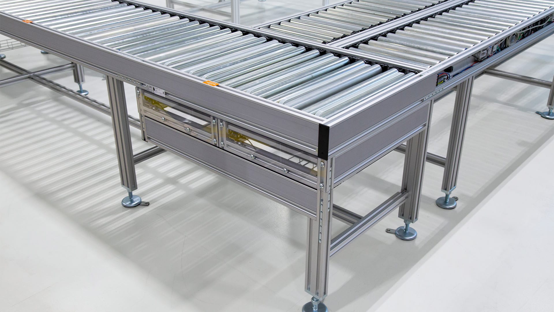 Unsere Kunden profitieren von der zeitsparenden Richtungsänderung des Förderguts ohne Heben oder Verschieben. Die flexible Anpassbarkeit der Zonen ermöglicht individuelle Gestaltung und Platzgewinn beim Transportieren verschiedenster Materialien. Standardunterbauten sind flexibel in der Höhe verstellbar. Dank der Einfachheit des Baukastensystems kann der Unterbau sogar an der Decke befestigt werden.