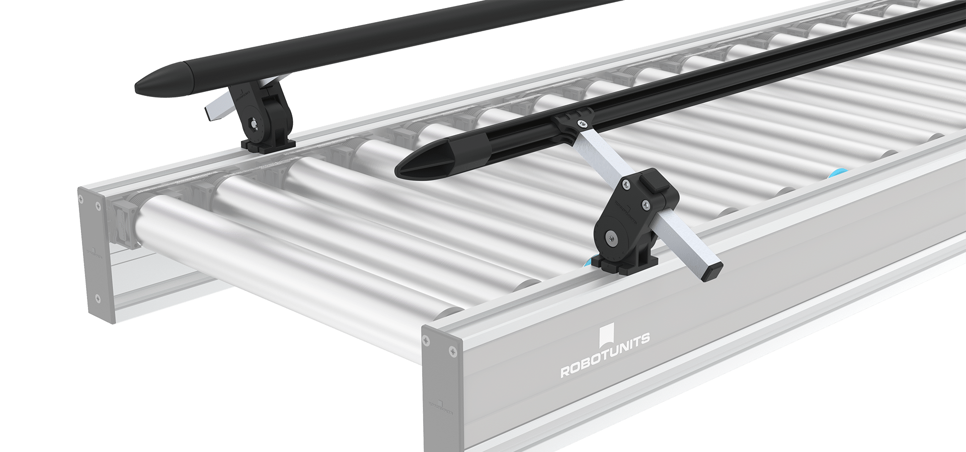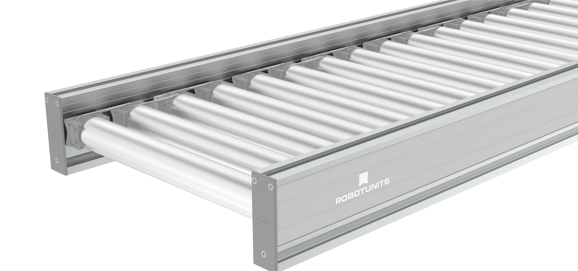 ‌Mit dem eigens entwickelten Profil für die Robotunits Rollenfördertechnik bieten wir eine einfache und integrierte Seitenführung, indem durch die vertieft platzierten Rollen bereits vom Profil eine seitliche Führung für ein sicheres Fördern entsteht. Je nach Transportaufgabe können auch andere Seitenführungen zur Anwendung kommen.